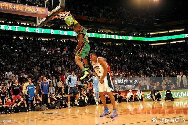最后就是10年内特罗宾逊了,小土豆扣篮实力肯定毋庸置疑,毕竟06年、09年和10年三度夺冠,其中06年属于一鸣惊人,身高只有1米68的他刚一出场就得到了全场欢呼,而2009年飞越超人霍华德也足够经典,所以到了2010年内特罗宾逊就有些一览众山小高手寂寞的意思了,这一年最好的扣篮是德罗赞接队友篮板边缘反弹的小风车扣篮,这也是那一晚上唯一一个满分扣篮,不过这依旧未能让小土豆提起精神,决赛中内特罗宾逊只是一个简单的自抛自扣就击败了对手,这一届确实没有人能对他形成威胁!